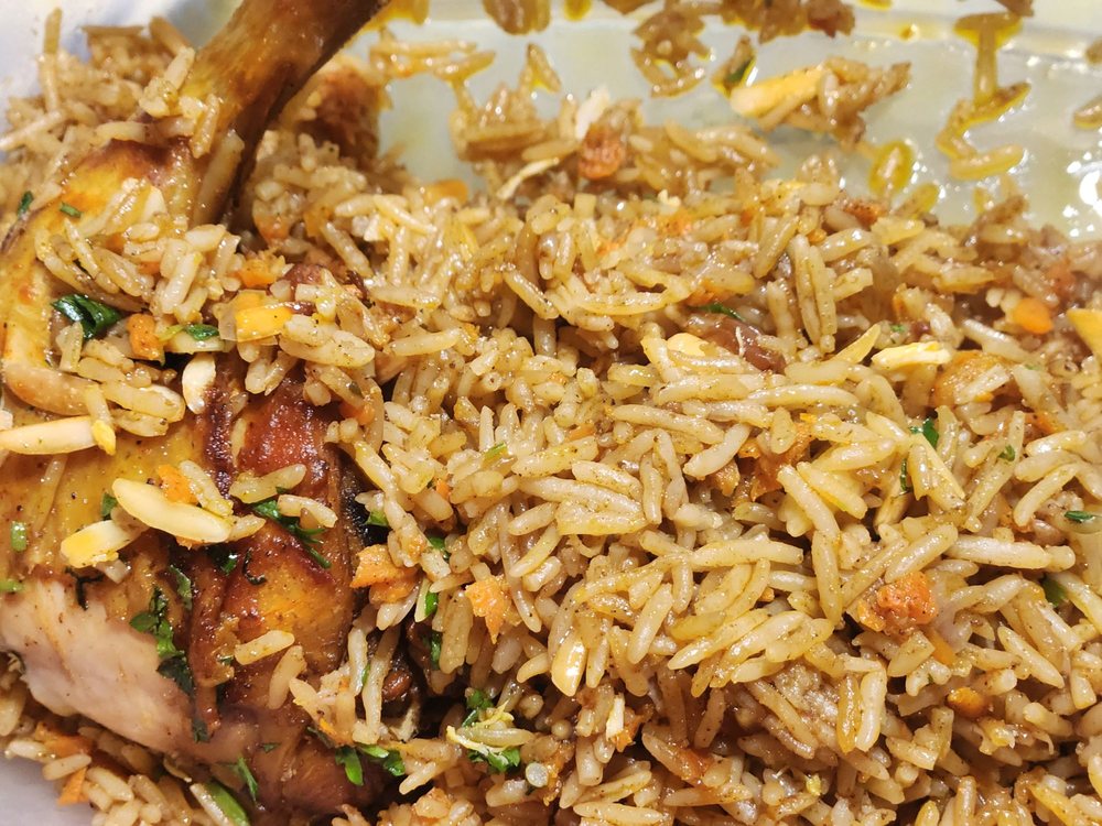flavorful & aromatic rice dish featuring tender roasted chicken & traditional middle eastern spices